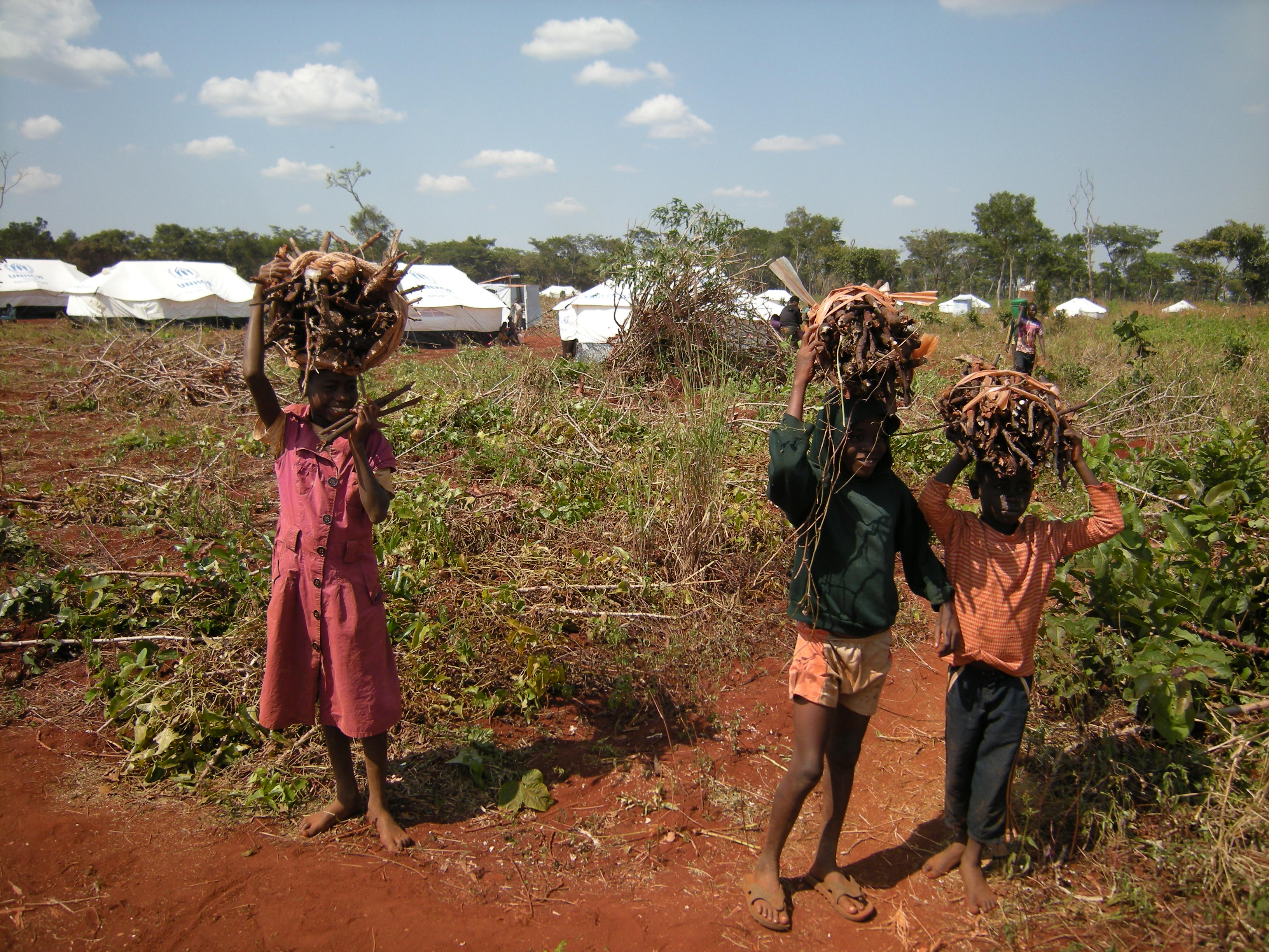 Children collect firewood in Nyarugusu refugee camp, Tanzania, among the tents for newly arrived refugees. Photo by Barbara Borst